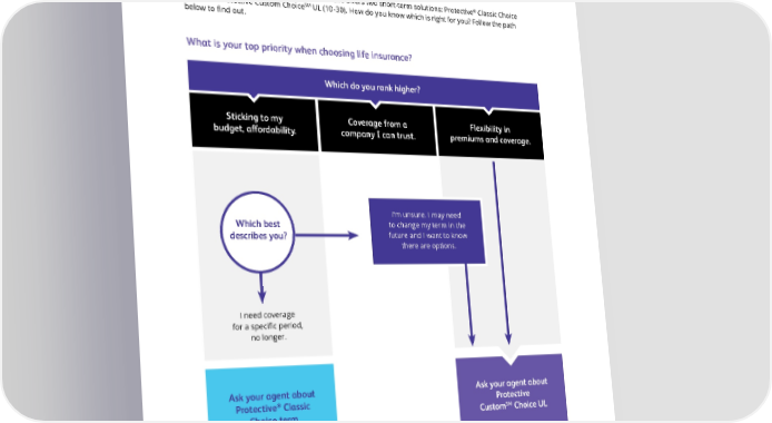 Classic or custom? ® Built with our customers in mind, Protective Life o昀昀ers two short-term solutions: Protective Classic Choice SM term and Protective Custom Choice UL (10-30). How do you know which is right for you? Follow the path below to 昀椀nd out. What is your top priority when choosing life insurance? Which do you rank higher? Sticking to my Coverage from a Flexibility in budget, a昀昀ordability. company I can trust. premiums and coverage. I’m unsure. I may need Which best to change my term in the describes you? future and I want to know there are options. I need coverage for a speci昀椀c period, no longer. Ask your agent about Ask your agent about ® Protective Classic Protective SM Choice UL Choice term Custom Either way, we’ve got you covered. It’s that simple.