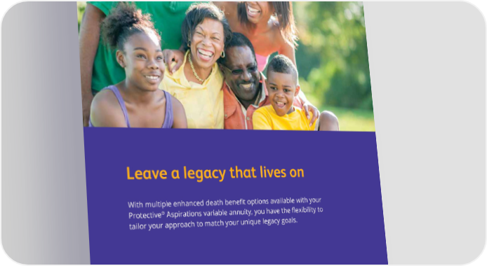 Leave a legacy that lives on With multiple enhanced death bene昀椀t options available with your ® Aspirations variable annuity, you have the 昀氀exibility to Protective tailor your approach to match your unique legacy goals.
